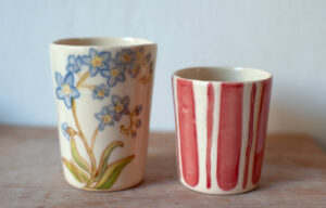 - Je leert werken met aardewerk, steengoed en porselein en je leert alles over glazuren en decoreren van keramiek. We werken in het atelier met handvormen en niet met een pottebakschijf. We hebben wel een pottebakschijf maar die staat in het Natuuratelier waar de lessen heerlijk buiten in de lente en zomer zijn. Bij handvormen kan je de klei vormen en decoreren precies zoals je zelf wil, met wat rust, gevoel, oefening en geduld. En rust, gevoel, oefening en geduld ontstaan juist door het werken met klei dus dat komt goed uit, keramieken is ontzettend ontspannend ( en verslavend ).