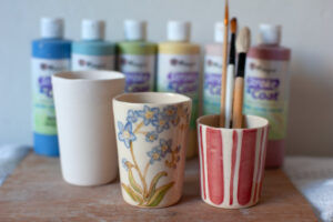 In de wekelijkse lessen kan je met aardewerk, steengoed en porselein leren werken en leren decoreren met verschillende glazuren/engobes/kleurpigmenten.